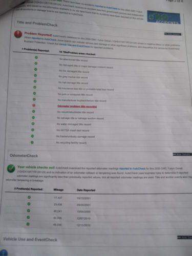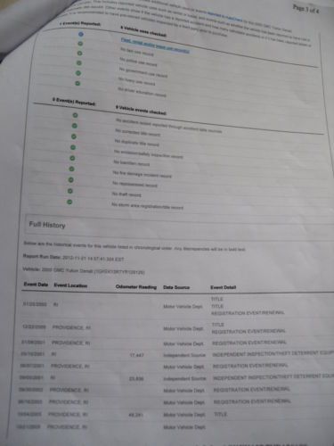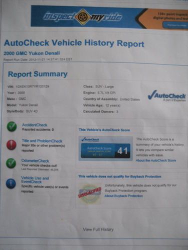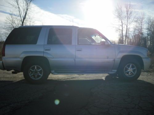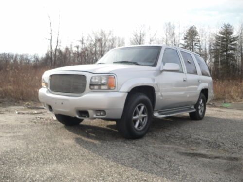 Exterior is in average to slightly above average condition. Paint and body is in good shape for year and miles. Some minor scuffs, as to be expected with a car this age. No visible rust. Frame in good shape. The Denali has a presence like no other suv. Truly stands out in a crowd. Over-stuffed, super plush leather seats through out. Very comfortable! Wood-grain trim looks great. Interior does show signs of expected ware. Small tear in drivers seat. All other seats look to be in good condition. Some minor imperfections. Radio does not currently work Starts, runs, drives. 4x4 works well. Super smooth ride "AutoCheck" vehicle history report conducted