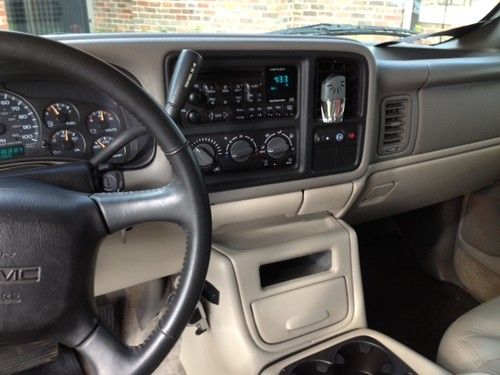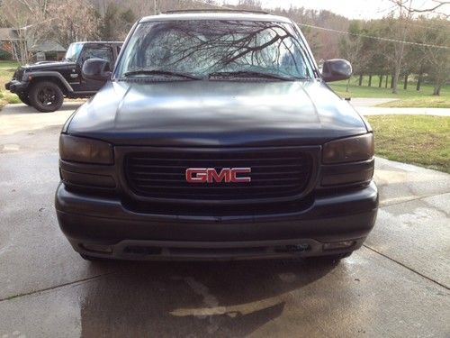 2000 GMC YUKON SLE. 4WD. 4 Door. Front and rear A/C. Moonroof. Power windows and seats. Heated seats. AM/FM radio and CD Player. Towing package. Tinted windows. Roof racks. Running boards. Nice grey interior, well taken care of. Very low mileage for the year. Rarely driven, Used as a secondary vehicle. The only damage to it since I had it was only cosmetic. I slid off the road and hit a mail box on the side. I had it completely fixed. (This will not show up on the report, because I repaired it out of pocket, not through insurance.) I had it custom painted flat black when it was repaired. It is push button 4WD. 4wd high, 4wd low and Auto 4wd. The service department said it will need L/F & R/F wheel speed sensors and it will cost a little over $230. Because I rarley drive it, there is pollen build up on top where I couldn't reach. Will need a little better cleaning. Various, minimal paint scuffs. Paint is starting to wear off on a couple of places on the roof racks. Back hatch is not a side by side, it opens up as one piece. I just had it serviced (4/2/13) including fluid change, and new battery. Does not have a keyless entry remote. Comes with the main key, 2 spare keys that I had made and the center console key.