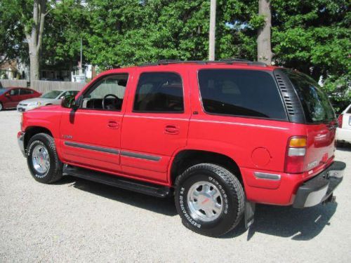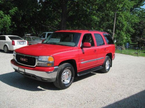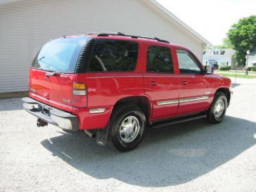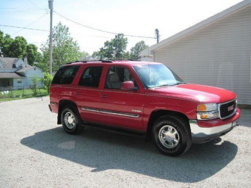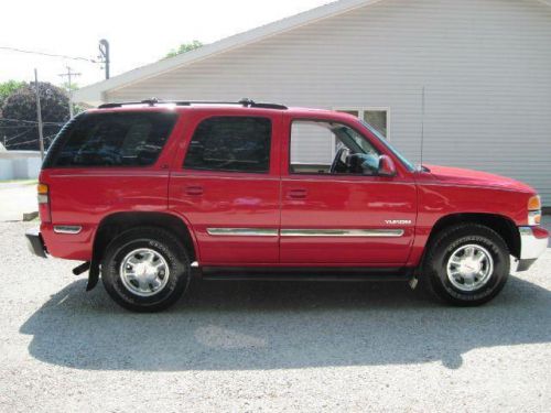 Wow this Yukon is a looker !!!!!!!!!!!!!! It comes with dual power seats, 3rd row seating, 4x4 transmission, chrome wheels, keyless remote entry, cd player, rear heating and cooling and much more. The exterior of this vehicle is clean, better than average. This vehicle appears to have been garaged. This vehicle appears to have never been smoked in. The interior of this automobile is clean. There is approximately 75% of the tire tread remaining. WE OFFER BANK FINANCING WITH GREAT RATES AND EXTENDED WARRANTIES ON MOST VEHICLES. EACH ONE OF OUR VECHICLES IS INSPECTED BY OUR SERVICE DEPARTMENT BEFORE WE OFFER IT FOR SALE. THANKS FOR LOOKING. Integrity, Honesty, and Customer Service is our Tradition