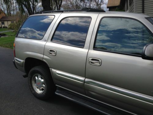 PAYPAL NOT ACCEPTED ..CASH ONLY at time of inspection\pick up..Feel free to bring a mechanic to inspect ..Original owner of this Yukon. Oil changes every 3K miles since I own it. Routine service as recommended by manufacturer. Last year I replaced Fuel Pump & Filter and had new bearings on my front driver side wheel. Currently the ABS and Brake light sensors stay on. I have been driving for years with this and has no effect on braking. A\C does not hold charge. I put freon in it but lasted only one week. The sun roof does not work. It will leak so I keep tape around it to keep water out. My daughter broke it many years ago and I never repaired it. The material is seperating around sun roof. ( see pic).Lat year I replaced bearings in front driver side and installed new fuel pump and filter.