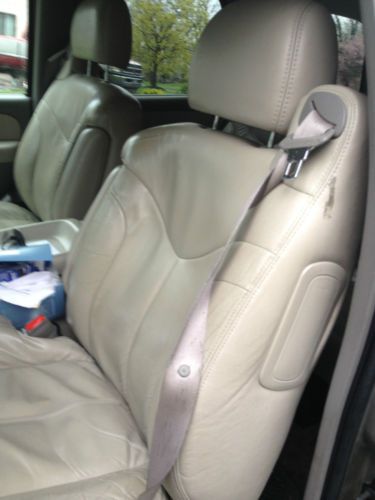 Leather seats are all fine except for front passenger which has a tear. ( see Pic)..I have 3rd row seats but keep them out of car as it's easier to put groceries in car without them in. They are included in sale. There is some minor surface scratches on vehicle as well as some dings on trunk door and front passenger door. ( see pics.) There is also a video player I installed years ago and multi CD player . I don't know if they work as we never use it any longer but they will stay with car. Rear Tires are in decent shape, fronts should be changed before winter.. Just put on new windshield wipers. Vehicle still runs fine but I'm tired of the $70 gas fill ups and no longer need this vehicle as kids are grown. If you have any questions or want closer photos feel free to contact me |