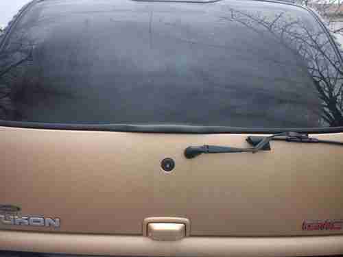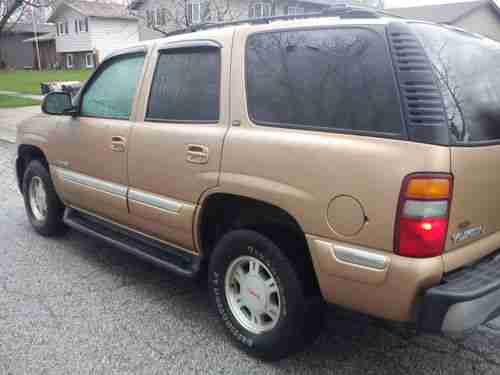 Up for sale is my 2001 GMC Yukon. I recently took it in to get a routine oil change and and the mechanic told me i had a slight oil leak at the pan and he seen a slight coolant leak. Told me the oil wasnt that much a problem and that he could look into the coolant leak, but i didnt have the time or money so he told me to make sure i check the levels constantly and get to it when i can. Well do other day i was driving and i started smelling a coolant smell thru the defrost and seen a light film of smoke rising so im assuming it has something to do with the mechanic was talking about, so now im about to park it. I still dont have the time to get it and i have other priorities on the table so i would rather try to give someone a good deal on a truck that still has a lot of life left if you ask me. The car stills starts right up, and shifts fine, all the power still works, power windows and locks. The body is still presentable a few dings here or there but nothing major. Interior is still nice, the usual wear on the driver seat but besides that nothing major, third row seating. Tires stil have alot of tread and It has rear entertainment and plug outlet jacks in the rear as well. Im starting the bid low with no reserve so take advantage and get this thing back to tip top shape. May GOD bless.