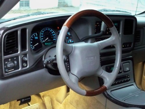 2002 GMC DENALI WITH THE FOLLING OPTIONS,PASSENGER AND DRIVERS AIR BAGS,POWER DRIVER SEAT,POWER DOOR LOCKS,POWER WINDOWS WITH DRIVERS AUTO DOWN,REAR WINDOW DEFOGER,CRUISE,TILT STEERING COLUMN,REAR (DUAL-ZONE)A/C,TWO TONE GREY LEATHER HEATED POWER SEATS,HEATED REAR SEATS(2 ROW),FOG LITES,BOSE AM/AM/CASS/6 DISC IN DASH CHANGER WITH PREMIUM SPEAKERS WITH SUB WOOFER WITH STEERING WHEEL CONTROLS AND REAR SEAT CONTROLS,WOODGRAIN LEATHER STEERING WHEEL,FRONT AIR DAM,TINTED GLASS,TRIP COMPUTER,3RD ROW REMOVABLE SPLIT BENCH,TELEMATIC SYSTEM,VARIABLE ASSISTED STEERING,ANTI-THEFT SYSTEM,AUTOMATIC HEADLIGHTS,INTERIOR AUTOMATIC DAY/NITE OR ELECTROCHROMATIC MIRROR WITH DRIVER MIRROR DIMMING,HEATED OUTSIDE MIRRORS,COLOR- KEYED RUNNING BOARDS,DRIVER MEMORY SEAT,FRONT SEATS WITH POWER LUMBAR SUPPORTS,KEYLESS ENTRY SYSTEM,LIMITED SLIP DIFFERENTIAL WITH 3.73 RATIO,REAR WIPER SYSTEM,2ND ROW SPLIT FOLDING BENCH SEAT,VOICE-ACTIVATED COMMUNICATIONS,ON STAR,DARK TINTED BACK GLASS,POWER SUNROOF WITH AUTO OPEN,HOME LINK OPENER,COLOR-KEYED CARPETED FLOOR MATS,REAR CARGO NET,BACK CARGO SPLASH MAT,12" DVD REAR SEAT PLAYER,HID HIGH AND LOW HEADLIGHTS,LED FOG LIGHT CONVERSION,TRANSMISSON TEMP GAUGE,REMOTE START SYSTEM,PUDDLE LAMPS,4L65 TRANSMISSON WITH COOLER,ENGINE OIL COOLER,POWER STEERING COOLER,SKID PLATES,AUTOMATIC LEVEL RIDE SYSTEM,AUTOMATIC SHOCK CONTROL,HEAVY DUTY TOW PACKAGE,FRONT AND REAR SWAY BARS,CONSOLE WITH OPENING TOP,PREMIUM LIGHT GROUP,BATTERY RUN DOWN PROTECTION,ALL SWITCH ARE BACKLIGHTED FOR NIGHT TIME VIEWING,ELECTRONIC CLIMATE CONTROL SYSTEM,ROOF TOP LUGGAGE CARRIER,INSIDE REAR VIEW MIRROR WITH COMPASS AND TEMP,22 INCH CHROME WHEEL WITH NEW TIRES LESS THEN 2000 MILES ON THEM.HAVE PAPERWORK FOR TRANMISSON REBUILD,ALL NEW BRAKES WITH PAPERWORK,AND OTHER REPAIRS.VERY CLEAN DENALI AS SHOWN IN PICTURES.IT'S HAS SOME MILES ON IT BUT IT DRIVES AND RUNS VERY WELL,I DRIVE THIS EVERY DAY AND IT'S NEVER LET ME DOWN.WOULD DRIVE IT ANYWHERE.THIS DENALI WILL MAKE SOME A NICE DRIVER.