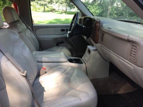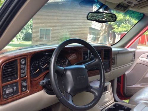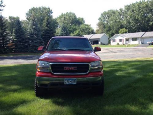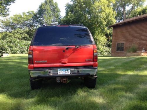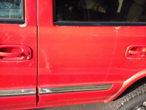 2002 GMC Yukon SLT 4wd. Has 4" Rancho lift, power everything, and Rides smooth. In Oct. 2013 I replaced and installed a new heavy duty transmission, shocks, new breaks and rotors all around, new hub assemblies,new battery, new alternator, and new tensioner and belts. Heat and air works well in front and back. Has paint flaking around rear wiper, and paint flaking along window under molding on all 4 doors. |