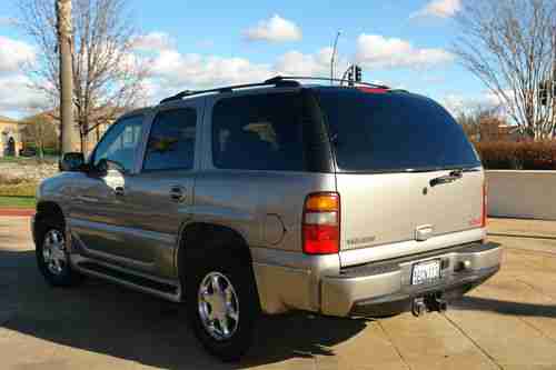 2003 GMC Yukon Denali, V8 AWD, 112,350 miles. Fully loaded power seats, heated front and rear leather seats, running boards, navigation, 6CD. This California SUV is in very good condition, rust free and never been in accident or any trouble at all. The exterior is in very good shape except a small scratch on the rear bumper on the right side(see pictures). The interior is in good shape, no rips or any damages. All four tires are Michelin and still have about 70% tread left. This Denali has been very well taken care off and always serviced on time