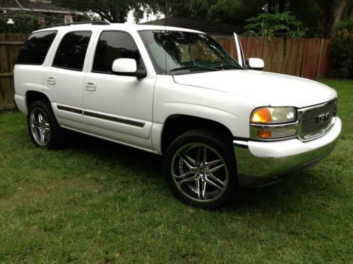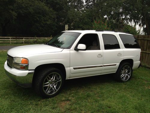 2004 GMC Yukon 2wd 4.8L. This has been great, and VERY well taken care of. It is a 3 owner vehicle. Truck was bought by my parents from a dealership with 35000 miles on it in may of 2005. Then In 2008 I paid off the vehicle with 106,000 miles on it, and took it over from my parents when i went to college. I drove it until september 2013. It currently has 234,000 miles on it. it has been taken care of since the day it was bought.It has had the waterpump replaced at 180,000. Full brakes, rotors, and front bearings(preventative) at 115,000 and 200,000 miles. The transmission rebuilt with heavy duty clutches at 220,000($1575). new tires at 218,000 miles($800.00). 22 inch dub dirty dog wheels. 3 rows of seats. Ice cold air, just fixed switches($400.00). Alpine cd player, kenwood speakers. Dual exhaust, flowmaster. Any more questions just ask.
