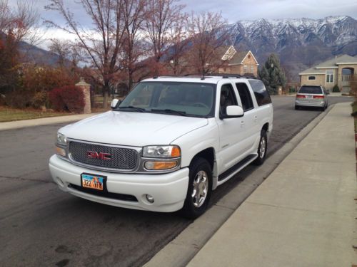 Beautiful one owner Denali package, GMC Yukon XL. I purchased this vehicle off the lot new in July of 2004 and have driven it between SLC and Las Vegas the majority of the miles. It has been garage kept and well cared for and serviced. This has been a very trouble-free and comfortable vehicle to drive. Heated front Captain seats with large center console. Separate driver/passenger temperature controls. Separate rear temperature controls along with separate audio controls for center seats. Center row heated Captain seats. Factory DVD Player with 6 wireless head phones included. 6 CD Changer/tape player with Bose speaker system. OnStar and full computer package. Factory running boards and wheel trim. Toe package with add-on electric trailer brakes.