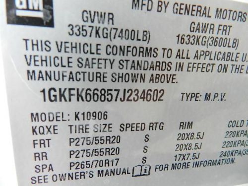 VIN (Vehicle Identification Number): 1GKFK66857J234602