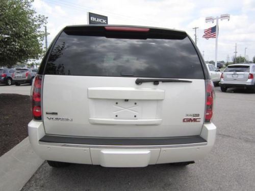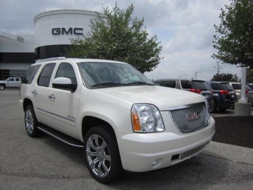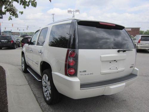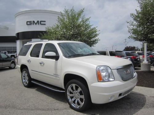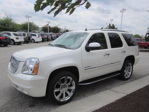 Yukon Denali, GM Certified, AWD, All Wheel Drive**, and GPS / Navigation**. White Beauty! Flex Fuel! Put down the mouse because this beautiful-looking 2011 GMC Yukon is the one-owner SUV you've been yearning to find. Having had only one previous owner means that this outstanding Yukon is sure to be a favorite among our more educated buyers. Consumer Guide Large SUV Best Buy. It is nicely equipped with features such as Autoride Suspension Package (Automatic Air Level Control), Yukon Denali, GM Certified, AWD, All Wheel Drive**, GPS / Navigation**, 10 Speakers, 3.42 Rear Axle Ratio, 3rd row seats: split-bench, 4-Wheel Disc Brakes, ABS brakes, Adjustable pedals, Air Conditioning, Alloy wheels, AM/FM Stereo w/MP3 CD/Navigation, Auto-dimming door mirrors, Auto-dimming Rear-View mirror, Auto-leveling suspension, Automatic temperature control, Bodyside moldings, Bumpers: body-color, CD player, Delay-off headlights, Driver door bin, Driver vanity mirror, Dual front impact airbags, Dual front side impact airbags, Electronic Stability Control, Emergency communication system, Front anti-roll bar, Front Bucket Seats, Front Center Armrest, Front dual zone A/C, Front fog lights, Front Full-Feature Reclining Bucket Seats, Front reading lights, Front wheel independent suspension, Fully automatic headlights, Garage door transmitter, Heated door mirrors, Heated front seats, Heated rear seats, Heated steering wheel, Illuminated entry, Leather Shift Knob, Leather steering wheel, Low tire pressure warning, Memory seat, MP3 decoder, Navigation System, Occupant sensing airbag, Outside temperature display, Overhead airbag, Overhead console, Panic alarm, Passenger door bin, Passenger vanity mirror, Pedal memory, Perforated Nuance Leather-Appointed Seat Trim, Power door mirrors, Power driver seat, Power passenger seat, Power steering, Power windows, Radio data system, Rear air conditioning, Rear anti-roll bar, Rear audio controls, Rear reading lights, Rear window defroster, Rear window wiper
