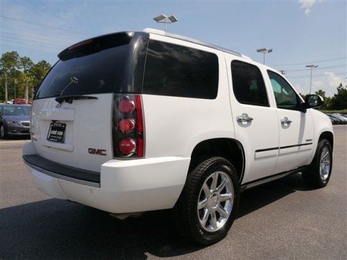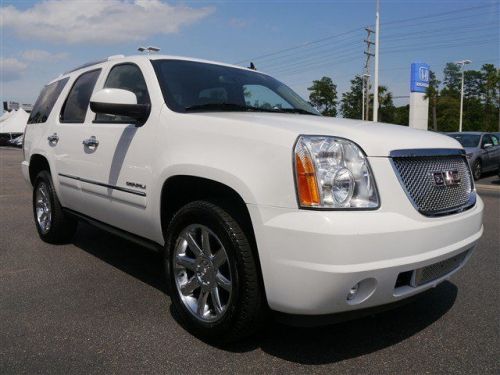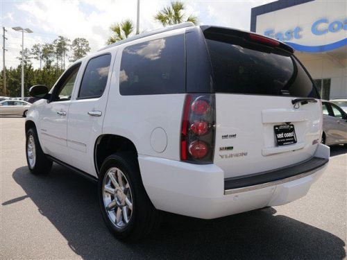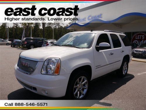 Drivers only for this dominant and agile 2012 GMC Yukon Denali. It comes equipped with these options: Armrests, driver and passenger doors, padded, LATCH system (Lower Anchors and Top tethers for CHildren), for child safety seats, Brakes, 4-wheel antilock, 4-wheel disc, Moldings, body-color bodyside with bright inserts, Theft-deterrent system, vehicle, PASS-Key III, Defogger, rear-window electric, Rear axle, 3.42 ratio, Mirror, inside rearview auto-dimming, Floor covering, color-keyed carpeting, Steering, power. Enjoy buttery smooth shifting from the Automatic transmission paired with this precision tuned Gas/Ethanol V8 6.2L/378 engine. Boasting an astounding amount of torque, this vehicle needs a serious driver! Pick up your friends and hit the road in this fabulous and fun-loving Yukon. A short visit to East Coast Honda Volkswagen located at 8756A-C Highway 17 Bypass South, Myrtle Beach, SC 29588 can get you a hassle free deal on this reliable Yukon today!