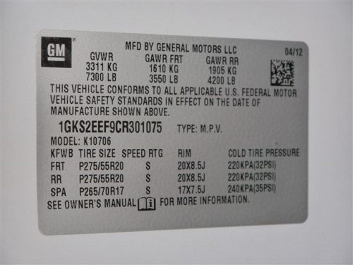 VIN (Vehicle Identification Number): 1GKS2EEF9CR301075