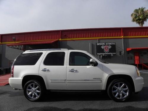 2013 GMC YUKON DENALI WITH SUN AND ENTERTAINMENT PACKAGE AND ONLY 15,000 ONE OWNER, NON SMOKER, CARFAX CERTIFIED MILES! THIS BEAUTIFUL WHITE DIAMOND DENALI IS LOADED AND UNDER FULL BUMPER TO BUMPER WARRANTY...I HAVE ALL THE KEYS, MATS, BOOKS AND RECORDS. ITS IN LIKE NEW CONDITION, INSIDE AND OUT. PLEASE CALL KEVIN CHAMP OR LINDA RADSICK FOR AN APPOINTMENT TO VEIW THIS SPECIAL VEHICLE. WE PROVIDE FINANCING NATION WIDE INCLUDING CHASE, ALLY, GMAC AND LOCAL CREDIT UNIONS. TRADE-INS ARE ALWAYS WELCOME.FLY DOWN AND DRIVE HOME OR I WILL ARRANGE SHIPPING WORLD WIDE. E -MAIL ME OR CALL KEVIN CHAMP AT 888-268-9561 FOR A QUOTE. AIRPORT PICK UP IS FREE OF CHARGE. WE WILL SUPPLY A 30 DAY TEMP TAG FOR OUT OF STATE BUYERS. WE DO NOT COLLECT SALES TAX ON CARS THAT ARE DELIVERED OUT OF STATE. WE INSPECT EVERY CAR FOR DEFECTS INSIDE AND OUT. WE DO EVERYTHING WE CAN TO MAKE THEM LIKE NEW. WE HAVE A FULL DETAIL SHOP AND DO DING REMOVAL AND CHIP REPAIR TO ALL OUR CARS. WE EVEN REPAIR SCUFFED WHEELS AND FIX DAMAGED LEATHER WHEN NEEDED. IN ADDITION, I HAVE A CUSTOMIZING BUSINESS THAT CAN MAKE YOUR CAR THE CAR OF YOUR DREAMS. WHEELS, GRILLS, AUDIO/VIDEO, TINT, CHROME ACCENTS AND CUSTOM PAINT ARE SOME OF THE SERVICES WE PROVIDE. IF YOU CAN IMAGINE IT, I CAN DO IT. MY VEHICLES ARE KEPT INDOORS IN MY 20,000 SQUARE FOOT INDOOR SHOWROOM IN TAMPA BAY, FLORIDA AND CAN BE SEEN BY APPOINTMENT ONLY. MOST CARS HAVE FACTORY WARRANTY INCLUDED. FOR THOSE THAT DONT, I HAVE A GREAT DEAL ON BUMPER TO BUMPER COVERAGE OR POWER TRAIN WARRANTIES THAT ARE GOOD IN ALL 50 STATES AND CANADA. PRICES START AT $500. I SPECIALIZE IN SHIPPING TO EUROPE AND ASIA. I HAVE CONTAINERS LEAVING WEEKLY. HAMBURG, GERMANY IS $1,500, KOTKA, FINLAND IS $2,000. U.K. IS $2,000. LARGER VEHICLES ARE EXTRA. MY INVENTORY IS FOR SALE LOCALLY AND ON OTHER SEARCH ENGINES. I HAVE THE RIGHT TO END AN AUCTION AT ANYTIME. WE TAKE TRADES AND WE BUY CLEAN CARS FROM FLORIDA RESIDENTS. All Vehicle Showings Are By Appointment Only. Call Today To Schedule Your Visit! The vehicle that you looked at and want to think about until tomorrow, is the same one that someone else looked at yesterday and is ready to buy today. Vehicles like this are extremely hard to find. Don't miss out on a great deal. For more information and details, visit my website at www.BayshoreAutomotive.com.