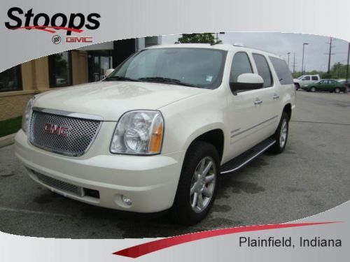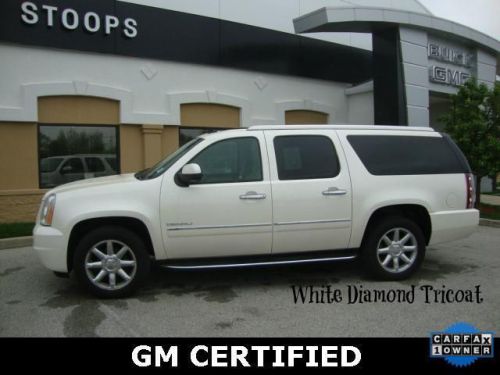 SAVINGS OFF LIST PRICE OF $55,995-AWD, White Diamond Tricoat, Cocoa/Light Cashmere w/Perforated Nuance Leather-Appointed Seat Trim, POWER SUNROOF, ALUMINUM WHEELS, NAVIGATION, DVD, BLUETOOTH, 3RD ROW SEATING, ONSTAR EQUIPPED, GM CERTIFIED, ONE OWNER, 10 Speakers, 2nd Row Power Seat Release Only, 2nd Row Reclining Captain's Bucket Seats, Blind spot sensor, Body-Color Power-Adjustable Heated Outside Mirrors, Front dual zone A/C, Front Round Halogen Fog Lamps, Heated & Cooled Driver & Front Passenger Seats, Heated 2nd Row Seats, Heated steering wheel, Heavy-Duty Air-to-Oil External Engine Oil Cooler, Power-Adjustable Pedals For Accelerator & Brake, Preferred Equipment Group 5SA, Rear Power-Operated Liftgate, Rear Vision Camera, Remote Vehicle Starter System, SiriusXM Satellite Radio, Spoiler, Turn signal indicator mirrors, and Universal Home Remote. Sun, Entertainment & Destinations Package (Inside Rear-View Auto-Dimming Mirror), Yukon XL Denali, GM Certified, Vortec 6.2L V8 SPI VVT, 6-Speed Automatic HD Electronic with Overdrive, STOOPS BUICK GMC-Proudly serving the Plainfield, Indianapolis, Mooresville, Greenwood and all surrounding communities for over 2 decades! Want to stretch your purchasing power? Well take a look at this superb 2013 GMC Yukon XL. This is a fantastic one-owner Yukon XL and it's ready for you to take home today. No sordid history on this one-owner creampuff. GM Certified Pre-Owned means you not only get the reassurance of a 12mo/12,000-Mile Bumper-to-Bumper limited warranty, but also a 2yr/24,000-Mile Standard CPO Maintenance Plan, up to a 5-Year/100,000-Mile, $0 Deductible, Fully Transferable, Powertrain Limited Warranty, a 172-point inspection/reconditioning, 24/7 roadside assistance, Courtesy Transportation, 3-Day/150-Mile Customer Satisfaction Guarantee, 3 month trial OnStar Directions & Connections Service if available, SiriusXM Radio 3mo trial if available, and a vehicle history report. Check out all the great features! A winning combi Stoops Buick-GMC is a COMPLETE CARE dealership that has been in the community for 20 years AND maintains a great reputation.