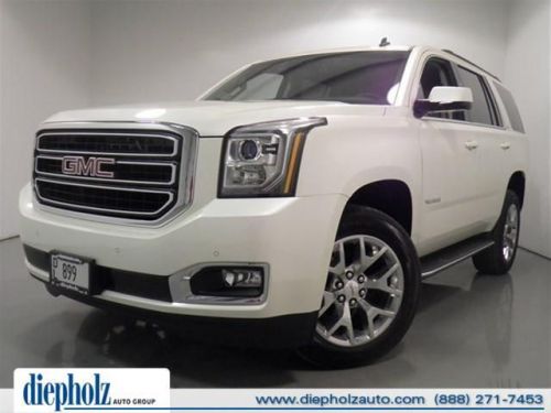 $1250 total available rebates! Zoom Zoom Zoom! NEW 2015! SLT, SUNROOF, HEATED & COOLED LEATHER SEATS, DVD, DRIVER ALERT PACKAGE, TRAILERING PACKAGE and much more! CLICK in for MORE details! **INVOICE and BELOW pricing available** for Internet Buyers, BIG savings possible -------------------> Call, text or email Matt Sears for more details (matt_sears@diepholzauto.com, phone: 888-903-5117). PLEASE call in advance to check availability, inventory changes quickly! .................................... FULL DETAILS: NEW 2015 GMC Yukon. This rugged Vehicle would look so much better out doing all the stuff you need it to, instead of sitting here unutilized on our lot!!! This gas-saving 2015 GMC Yukon SLT will get you where you need to go** Standard features include: OnStar, Satellite Radio, Leather seats, Bluetooth, Remote power door locks, Power windows with 4 one-touch, Heated drivers seat, Automatic Transmission, 4-wheel ABS brakes, Air conditioning with dual zone climate control, Rear air conditioning - With separate controls, Audio controls on steering wheel, Universal remote transmitter, Traction control - ABS and driveline, Driver memory seats, Memory settings for 2 drivers, 8-way power adjustable drivers seat, Heated passenger seat, Head airbags - Curtain 1st, 2nd and 3rd row, Passenger Airbag, 5.3 liter V8 engine, 355 hp horsepower, Multi-function remote - Trunk/hatch/door/tailgate, remote engine start, Power heated mirrors, Tilt and telescopic steering wheel, 4 Doors, Four-wheel drive, Fuel economy EPA highway (mpg): 22 and EPA city (mpg): 16, Heated steering wheel, Front fog/driving lights, Compass, External temperature display, Tachometer, Trip computer, Power Activated Trunk/Hatch - Power liftgate, Transmission hill holder, Remote engine start, Cylinder Deactivation, Keyless Ignition - Doors and ignition, 4WD Type - Automatic full-time, Limited slip differential - Mechanical, Stability control - Stability control with anti-roll, Daytime running lights, D Diepholz Auto Group offers the most customer focused and friendly buying experience on the Internet. If earning your business means selling you a vehicle BELOW cost, OVER allowing for your trade, finding you the PERFECT vehicle or providing FLEXIBLE financing options, consider it done! We want you as a customer. View our inventory of over 300 new and used vehicles online @ www.diepholzauto.com