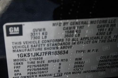 VIN (Vehicle Identification Number): 1GKS1JKJ7FR183634