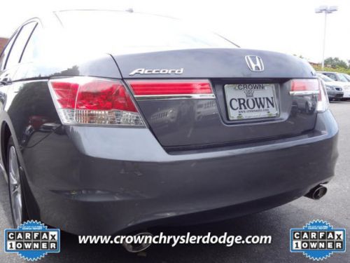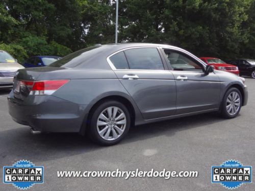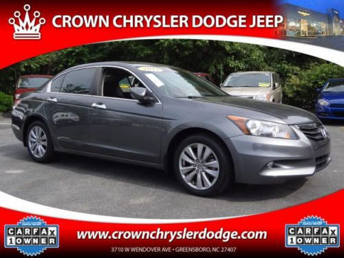 -New Arrival- -Priced Below The Market Average- Bluetooth, Satellite Radio, 6 Cylinder Engine, and Premium Sound System This Polished Metal Metallic 2012 Honda Accord Sdn EX-L is priced to sell fast! Price plus tax, tags, and $539 dealer administrative fee on approved credit only. Crown Chrysler Dodge Jeep Ram prides itself on value pricing its vehicles and exceeding all customer expectations! The next step? Give us a call to confirm availability and schedule a hassle free test drive! We are located at: 3710 West Wendover Avenue, Greensboro, NC 27407. Please print this add and ask for our Internet Sales Dept. to receive your special Internet discount of $250. Price plus tax, tag, and dealer administrative fees on approved credit only. While every effort has been made to ensure display of accurate data, this listing may not reflect all accurate vehicle items. All inventory listed is subject to prior sale. Photo shown may be an example only.