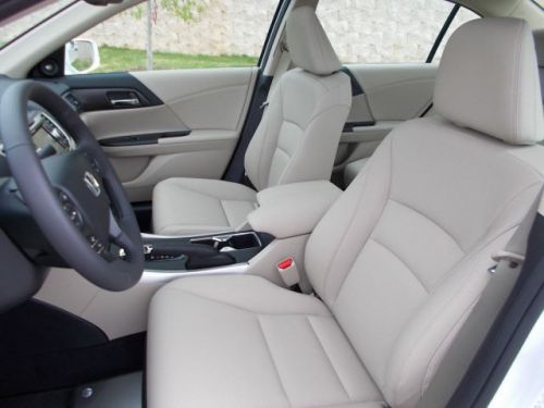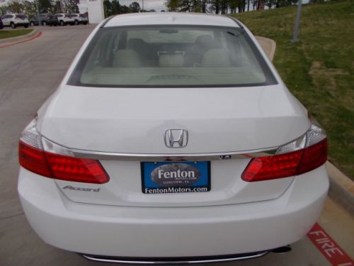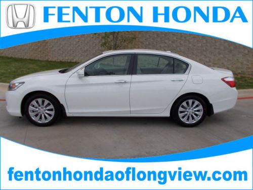 Honda of Longview is honored to present a wonderful example of pure vehicle design... this 2014 Honda Accord Sedan EX-L only has 158 miles on it and could potentially be the vehicle of your dreams! This wonderfully fuel-efficient vehicle offers a supple ride, quick acceleration and superior styling without sacrificing MPGs. There are many vehicles on the market but if you are looking for a vehicle that will perform as good as it looks then this Accord Sedan EX-L is the one! This White Honda is clean and shiny exterior makes it look like it came straight from the factory. More information about the 2014 Honda Accord Sedan: The Honda Accord is a mid-sized car, competing against some of the best-selling vehicles in America. Prime targets for the Accord include the Camry and the Altima. The Accord is a solid value, but with a capable and sophisticated chassis that can feel quite luxurious when properly optioned. This versatility allows it to be either a spacious alternative to many economy cars or a less expensive alternative to many luxury cars. There is even a stylish coupe available with performance that matches many sports cars. Interesting features of this model are Fuel efficiency, interior space, long history of reliability, and variety of configurations available Thank you for visiting a listing of Fenton Honda of Longview, home of the FREE OIL CHANGES FOR LIFE! Most of our vehicles have 0.9% financing right now, lock in your low interest rate and go to http://www.fentonhondaoflongview.com/web/financing/ Please call and ask for Mike Buenaventura to receive EXCLUSIVE Internet pricing!!