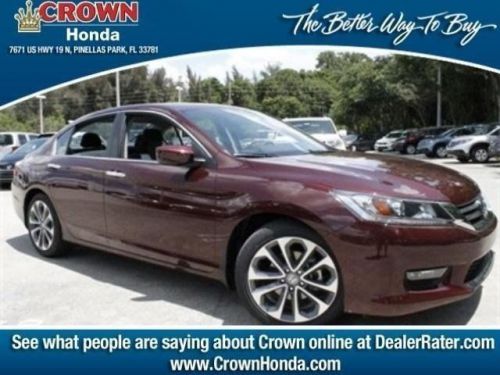 , Before Discount:$25,305.00, Dealer Discount:($3,280.00), Internet Price:$22,025.00, Total Savings:($3,280.00)!BACK-UP CAMERA, BLUETOOTH, MP3 Player, KEYLESS ENTRY, 34 MPG, The Accord is synonymous with Honda and has been known for nearly four decades as a reliable, comfortable, pragmatic way to move families. What began as a 2-door hatchback in 1976 has grown into today's full-size sedan and coupe. Like the rest of the car, the 2014 Accord's 5-passenger interior is a pleasing step forward. The cabin boasts soft-touch materials for a quality feel. The front seats are comfortable, and the driver's seat actually toned down the lumbar support. The rear seats have even more room, as does the trunk. Sleek, rippled sheet metal defines a more streamlined exterior that has shrunk around an interior that feels roomier than previous generations. The most surprising thing about the Accord is its refined continuously variable transmission (CVT). Mated to the 4-cylinder, this CVT feels much like a normal automatic, mimicking gear changes. Even a base Accord has good power for acceleration and passing, yet attains an impressive mileage on the highway. Move up to a V6 model with 6-speed automatic transmission, and the Accord is downright quick. For the individual looking to consume less the 2014 Accord comes in a Hybrid version as well. This operates on a 141-hp 2.0-liter, 16-valve i-VTEC 4-cylinder engine and a 55-hp lithium-ion battery pack for a net hp of 196. The Hybrid can achieve ratings of 50 cty and 46 hwy. To help maximize efficiency on the road, the Accord Hybrid seamlessly shifts between three distinct drive modes: EV Drive, Hybrid Drive and Engine Drive. EV Drive is 100% electric, and generally is used during braking and when starting from a stop. Hybrid Drive uses the fuel engine and electric motor to provide extra zip during acceleration, and once your Accord Hybrid is cruising with highway efficiency, Engine Drive takes over. If you want a hassle-free, pleasing family car with a reputation for quality and an immediate familiarity, you can't go wrong with the Accord. Crown Automotive Group serving Tampa Bay Florida offers great low prices, rebates and incentives for new Group & used Group cars, vans and SUVs to all of our neighbors in St. Petersburg, Largo, Clearwater, and Pinellas Park. Our Expert Service & Parts staff assist our Florida customers keep their Group vehicles in great shape.