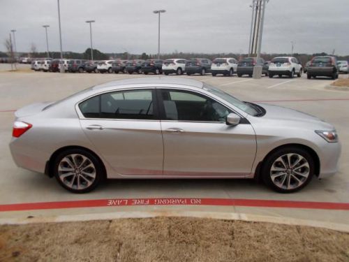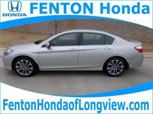 You can find this 2014 Honda Accord Sedan Sport and many others like it at Honda of Longview. This vehicle was engineered to be both economically and environmentally friendly with exceptional fuel efficiency. The quintessential Honda -- This Accord Sedan Sport speaks volumes about its owner, about uncompromising individuality, a passion for driving and standards far above the ordinary. This Nh-700m/alabaster Honda is clean and shiny exterior makes it look like it came straight from the factory. More information about the 2014 Honda Accord Sedan: The Honda Accord is a mid-sized car, competing against some of the best-selling vehicles in America. Prime targets for the Accord include the Camry and the Altima. The Accord is a solid value, but with a capable and sophisticated chassis that can feel quite luxurious when properly optioned. This versatility allows it to be either a spacious alternative to many economy cars or a less expensive alternative to many luxury cars. There is even a stylish coupe available with performance that matches many sports cars. This model sets itself apart with Fuel efficiency, interior space, long history of reliability, and variety of configurations available Thank you for visiting a listing of Fenton Honda of Longview, home of the FREE OIL CHANGES FOR LIFE! Most of our vehicles have 0.9% financing right now, lock in your low interest rate and go to http://www.fentonhondaoflongview.com/web/financing/ Please call and ask for Mike Buenaventura to receive EXCLUSIVE Internet pricing!!