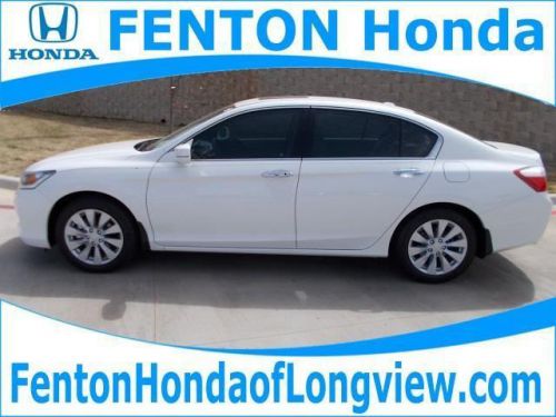 You can find this 2014 Honda Accord Sedan TRGV6 and many others like it at Honda of Longview. The Honda Accord Sedan TRGV6 is economically and environmentally smart. Honda clearly delivers on its promise to provide a fuel-efficient vehicle that has the great qualities you need in a vehicle. The look is unmistakably Honda, the smooth contours and cutting-edge technology of this Accord Sedan TRGV6 will definitely turn heads. Driven by many, but adored by more, the Accord Sedan TRGV6 is a perfect addition to any home. More information about the 2014 Honda Accord Sedan: The Honda Accord is a mid-sized car, competing against some of the best-selling vehicles in America. Prime targets for the Accord include the Camry and the Altima. The Accord is a solid value, but with a capable and sophisticated chassis that can feel quite luxurious when properly optioned. This versatility allows it to be either a spacious alternative to many economy cars or a less expensive alternative to many luxury cars. There is even a stylish coupe available with performance that matches many sports cars. Interesting features of this model are Fuel efficiency, interior space, long history of reliability, and variety of configurations available Thank you for visiting a listing of Fenton Honda of Longview, home of the FREE OIL CHANGES FOR LIFE! Most of our vehicles have 0.9% financing right now, lock in your low interest rate and go to http://www.fentonhondaoflongview.com/web/financing/ Please call and ask for Mike Buenaventura to receive EXCLUSIVE Internet pricing!!
