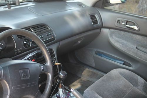 1997 Honda Accord with a 2.2L vtech with a MANUAL transmission. it has 136k miles on it and climbing as its my main source of transportation. it was painted a couple years ago by 1 day paint and they warranty the paint job for five years. the car has rota rims with pirelli p7 tires which have plenty of tread left on them. the timing belt was done a few thousand miles ago and should never have to be replaced again. i also put slotted and drilled rotors in the front, all pads are ceramic. i have replaced the head unit with a dual and have replaced the door speakers and 6x9 with aftermarket speakers. i also have a 10 inch sony explode subwoofer that is practically new. the headlights are halo headlights and the tail lights are an ebay special, the cold air intake is a ebay special as well. i did have a performance exhaust on the car but just recently had something quieter put on, but the tubing from cat back is all 2 and a quarter inch piping making it easy if you wanted to put one back on it. there is very minor damage on the car, as you can see in the pictures there is a dent in the trunk from a trashcan and a mark on the bumper from some lovely person. this is a one owner car and has been in my family for a good portion of my life and i have done my best trying to take care of it but i have outgrown it and would like to pass it on. asking 5250, if you have any questions you may contact me through craigslist email only and i will respond as quick as i can. only serious offers will be considered.