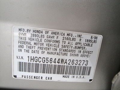 1998 Honda Accord Lx*60k Orig 1 Elderly Owner*auto*ac*x-nice*perfect 1 Car*fla on 2040-cars