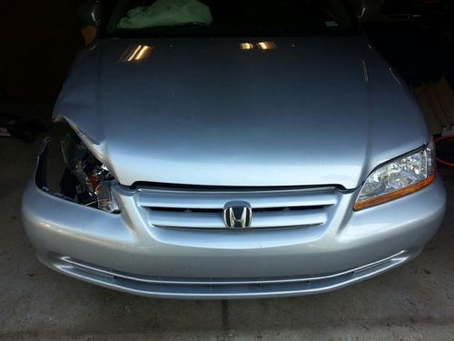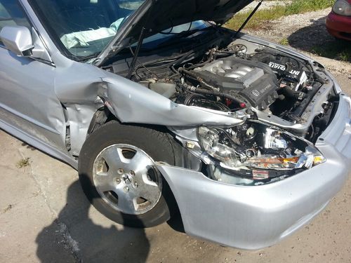 2001 HONDA ACCORD LX V6 WITH 110000 MILES LEATHER, POWER SUNROOF 6 DISK CHANGER POWER SEATS CAR STILL STARTS REPAIRABLE AIR BAGS ARE OUT RADIATOR AND A/C CONDENSOR ARE FINE FRAME RAIL IS BENT, STRUT IS BENT WINDSHIELD IS BUSTED TIRES AND BRAKES HAVE LESS THEN 2000 MILES ON THEM COULD BE OTHER THINGS WRONG TO IM NOT A BODY SHOP NEEDS TO BE TOWED TITLE IS CLEAR