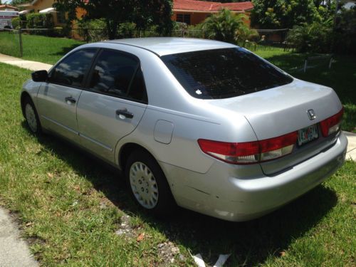 FOR SALE is a 2003 Honda Accord. Vehicle is in perfect mechanical condition. No accidents! Will not break down or leave you stranded. It has been lightly driven by the second owner for over 12 years. Engine runs smooth with no missing or hesitation. Has just under 187,000 miles. Everything works. A/C blows cold, starts quick, transmission shifts fine, no rattles or vibrations. This car has a 5 speed Manual Transmission. The exterior has no major dents or body damage. The vehicle could use a new paint job, it has never been repainted which is a good thing as most painted vehicles have been in an accident before. A very reliable car overall that will just work when you need it.