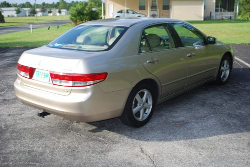 2003 Honda Accord EX with leather, 4-cylinder 2.4L VTEC engine, FWD, automatic transmission, 4-wheel ABS brakes, cruise control, AM/FM radio with 6-CD player, and low mileage. Excellent (Clean Retail) condition. Michelin Primacy tires. Includes trailer hitch (no wiring) and Wolf custom-fit auto cover.