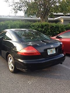 This auction is for a 2004 Honda Accord. 2 owner car. Florida Car. This car has wear and use and is obvious. Runs fantastically. Paint job has that fading that happens sometimes. Looks like a white powder covering. Black exterior on Black interior. Interior is cloth. Interior has stains and some blemishes on the seats. Was used for mostly short 15 mile rides back and forth to work. Has new tires 6 months ago. Brand New Tires put on with a wheel alignment on 9/9/2013. Problems? Minor and aesthetic. if you want a mint LOOKING car, paint this one. No mechanical problems currently. Car is in good condition to be driven home if you are out of town, just be mindful that it is not a new car. You are more than welcomed to come by with your mechanic for a test drive prior to the end of the auction.