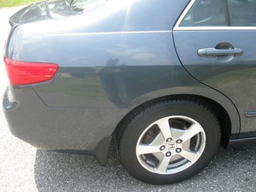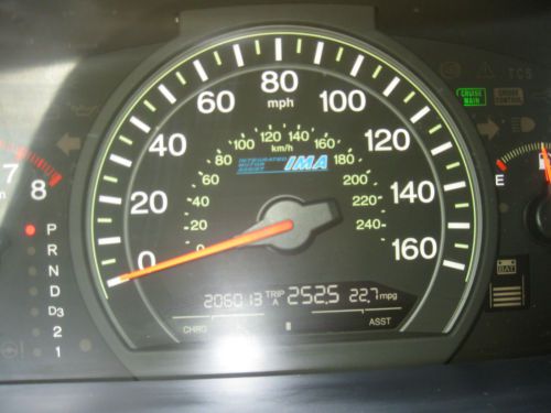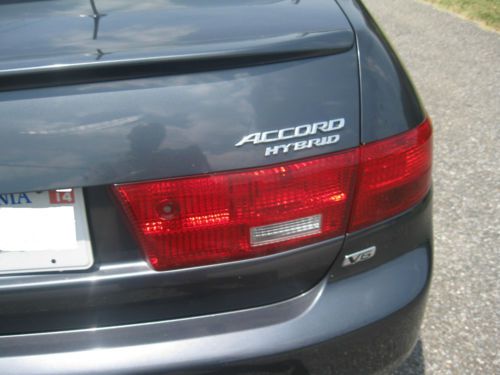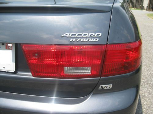 For sale is a 2005 Honda Accord Hybrid that runs and drives very good. I've been driving this car 150miles one-way back and forward every other weekend for the last two years. I've never been stranded. This is a great car for any person who wants a hybrid to save on gas with V6 power and plenty of room.. The 3.0L six cylinder electric/gas engine purrs along without a miss, smoke or fluid loss. The hybrid system is working perfectly. It charges and assists as necessary and the auto stop engages when stopped. No "check engine" or IMA warning lights. The automatic transmission shifts smoothly. The brakes, steering and suspension are in good condition. No exhaust leaks. The exterior is a glossy gray. It has a few scratches and the three small dents mentioned above but nothing major. No body rust. The windshield and door glasses are crack free. There is a quarter inch hole in mirror cover of the passenger side. (see pic). The lights and lenses are clear and crack free. The tires are new. The factory alloy wheels are in great condition. (see pic). The interior is gray carpet and leather seats. The front seats are heated. All seats and the carpet are in excellent condition(see pic). Vehicle had just been detailed cleaned. (see pic). All the power options such as cruise control, windows, side mirrors, etc. work as designed. There are steering wheel controls for cruise and audio. There is a factory sound system with a six CD changer. The climate control (heat and AC) are working perfectly. This is a great Accord Hybrid that is just as fuel efficient as the newer high priced models and seems to have a lot more years and miles left. The new owner should be able to drive anywhere with confidence. SOLD AS IS |