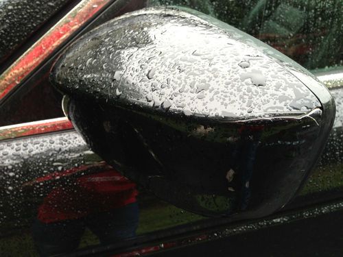 The drivers side mirror was hit by an errant bicyclist and the cover has a small crack.
