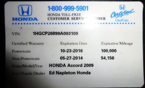 2009 Honda Accord EX-L with navigation, heated leather seats, sunroof, only 50K miles. Purchased as a Certified Honda 10 months ago. Bumper to bumper certified warranty until 05/27/14, powertrain warranty until 10/23/2016 or 100,000 miles. Garage kept, great condition. Clean Carfax report. Bluetooth hands-free phone link, voice activation, and an integrated Zagat guide.The list of standard safety equipment includes vehicle stability assist and active front head restraints, along with front side airbags, full-length side curtain airbags and 4-wheel anti-lock disc brakes with brake assist. |