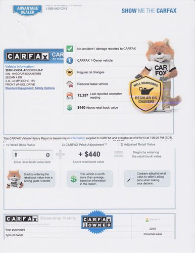 2010 Honda Accord Lx - P One Owner Clean Carfax Low Miles on 2040-cars