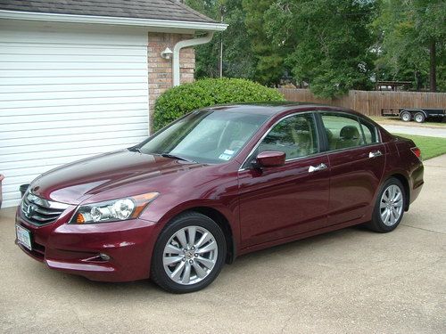 2011 Honda Accord 4 DR EX-L V6 for sale in mint condition. It has a 5 Speed Automatic Transmission with Grade Logic Control; 4-Wheel Disc Brakes; Front Double Wishbone Suspension; Rear Multi-Link Suspension; Variable Gear Ratio and Assist Rack-and-Pinion Power Steering; Front and Rear Stabilizer Bars; Immobilizer Theft-Deterrent System. The color is Basque Red Pearl with Ivory Leather Interior. Front seats are 4-way power seats and both are heated front seats as well. There is a one-touch power Moonroof and heated power door mirrors and a security system. Mileage showing is 53,000 and I am the original owner of the vehicle. The car is listed first on the Kelly Blue Book in holding its value. All maintenance papers are on file for viewing.