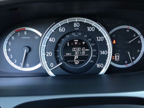 Only 3,100 miles, one owner - V6 EX-L with Navigation, Lane Departure & Front Collision Warning Alert! The car has a backup Camera, right mirror blind-spot camera, smoke-free,Heated Front Seats, Bluetooth, XM Satellite Radio, USB/Auxiliary Audio Input, Leather Steering Wheel, Smart Key with Push-Button Start, Leather Trimmed Interior, Power Front Seats with Driver's Memory, Dual-Zone Automatic Climate Control, Power Sunroof, flawless interior and still has it new car smell! The car is fully equipped!!! The car comes with its full bumper to bumper warranty. The Vehicle is kept covered and parked inside a garage at ALL times. I purchased the vehicle in September 2013 and due to two back surgeries have not had the pleasure of enjoying the vehicle as intended when purchased. We purchased a smaller vehicle which is much easier for me to handle as the Honda is a bit too large. On Apr-21-14 at 08:45:23 PDT, seller added the following information: **Excellent Buy!! Car still has full factory warranty. ALL SALES FINAL. So, please feel free to have an car inspection service to schedule a time to inspect the car if you are interested. Please review the pics, ask questions, the car is sold as is (great) and if you bid, you buy. :-)) On Apr-21-14 at 10:48:38 PDT, seller added the following information: *****I have added 3 additional pics as there a scratch on the bumper that was touched-up with Honda paint. I added this for view as I want to be as thorough and honest as possible with any thing that I am aware of with the vehicle.**** |