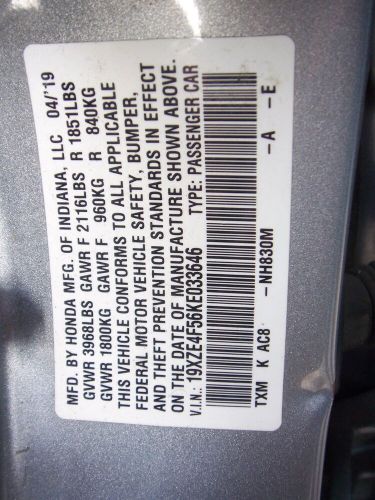VIN (Vehicle Identification Number): 19XZE4F56KE033646
