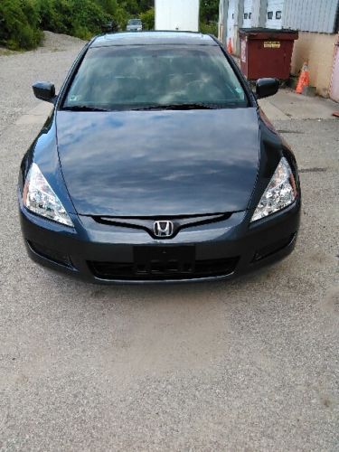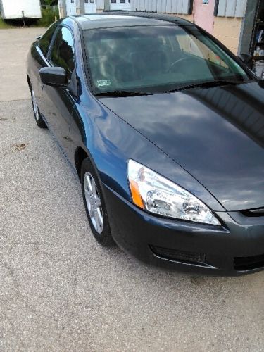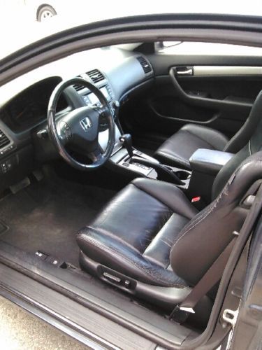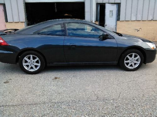2003 HONDA ACCORD EX COUPE; IMMACULATE CONDITION; ORIGINAL OWNER; NEVER BEEN IN AN ACCIDENT; PERFECT CARFAX; NO DINGS, NO DENTS, NO SCRATCHES. THIS CAR HAS BEEN METICULOUSLY MAINTAINED. NEW PENNSYLVANIA INSPECTION STICKERS. LOADED WITH ALL OPTIONS. LEATHER, SUNROOF, 6 CYLINDER, ETC. MUST SEE. WILL POSSIBLY CONSIDER A CONVERTIBLE. BID WITH CONFIDENCE. LOOK AT MY EBAY FEEDBACK. THIS IS MY OWN PERSONAL CAR. Ext / Int Color GRAY with BLACK Leather Interior Luxury Features Air Conditioning Steering Wheel Radio Controls Cruise Control Sunroof Power Equipment Power Steering Power Windows Power Locks Safety Features Security System Keyless Entry Anti-Lock Brakes Traction Control System Passenger Air Bag Intermittent Wipers Front Wheel Drive Rear Defogger Audio / Video Factory System AM/FM CD Pla |