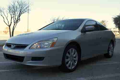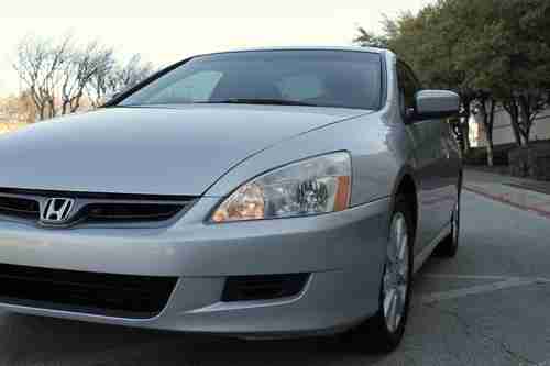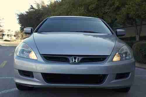 This 2006 Honda Accord Coupe with LEATHER, SUNROOF, V6, AUTOMATIC, HEATED SEATS, Silver with grey interior, tires are in great shape, fully serviced, adult driven and maintained. Minor right front fender collision shows on carfax, but was repainted back to specs. Clean transferable title. This Honda only has 97k miles!