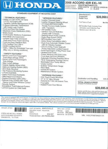 Low Mileage As-new 2008 Honda Accord V6 on 2040-cars