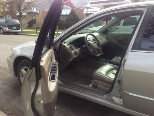 Up for auction we have a nice 1999 Honda Accord 4 Door and Beige in Color with beige leather interior. It's a great car. I'm selling this for a colleague and long time friend of mine. We've worked together and known each other for over ten years now. I'm his go-to-guy for most everything. I even do his taxes. It's no wonder why when his parents decided to gift him their newer car that he decided to have me sell this car for him. This is his sole reason for selling this car. His parents gave him their newer Jeep for his 40th Birthday. Otherwise, he'd love to keep this car as it runs and drives great. Because he planned on keeping the car, he recently put a bunch of money into it. He recently bought a new battery, just tuned up the car and performed much maintenance. He bought the car in July, 2011 as the title reads. He paid about $6,000. It was purchased from a reputable service shop in the Gold Coast area and had a professionally installed brand new transmission. The vehicles current blue book value is at about $4,500. I have the clean and clear signed title in hand ready to hand over to the highest bidder upon completion of this auction. The vehicle is located in my yard in the Midway Airport area and is available for inspection upon request and appointment.