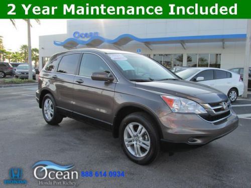 Honda Certified, 2011 Honda CR-V EX-L, Clean Carfax one owner, Fully Serviced, Honda Certified, Leather, and Never any dealer fee. Never any dealer fee at Ocean Honda. Want to save some money? Get the NEW look for the used price on this one owner vehicle. Previous owner purchased it brand new! This SUV is nicely equipped with features such as Honda Certified, 2011 Honda CR-V EX-L, Clean Carfax one owner, Fully Serviced, Honda Certified, Leather, Never any dealer fee, 4.50 Axle Ratio, 4-Wheel Disc Brakes, 7 Speakers, ABS brakes, Air Conditioning, Alloy wheels, Anti-whiplash front head restraints, Automatic temperature control, Brake assist, Bumpers: body-color, CD player, Delay-off headlights, Driver door bin, Driver vanity mirror, Dual front impact airbags, Dual front side impact airbags, Electronic Stability Control, Four wheel independent suspension, Front anti-roll bar, Front Bucket Seats, Front dual zone A/C, Front reading lights, Fully automatic headlights, Heated door mirrors, Heated front seats, Heated Reclining Front Bucket Seats, Illuminated entry, Leather Shift Knob, Leather-Trimmed Seats, Low tire pressure warning, MP3 decoder, Occupant sensing airbag, Outside temperature display, Overhead airbag, Overhead console, Panic alarm, Passenger door bin, Passenger seat mounted armrest, Passenger vanity mirror, Power door mirrors, Power driver seat, Power moonroof, Power steering, Power windows, Rear anti-roll bar, Rear seat center armrest, Rear window defroster, Rear window wiper, Remote keyless entry, Security system, Speed control, Speed-sensing steering, Speed-Sensitive Wipers, Split folding rear seat, Steering wheel mounted audio controls, Tachometer, Telescoping steering wheel, Tilt steering wheel, Traction control, Trip computer, Variably intermittent wipers, and XM Radio. Awarded Consumer Guide's rating as a 2011 Compact Car Best Buy. Honda Certified Pre-Owned means you not only get the reassurance of a 12mo/12,000 mile limited warranty, but also up to a At Ocean Honda The Customer is Number 1. With no Dealer Fees we are the premier Honda Dealer in the Tampa Bay area. Come see for yourself why Ocean Honda Customers drive from Miles and Miles around to get an Ocean Honda Deal!! 888-469-2710