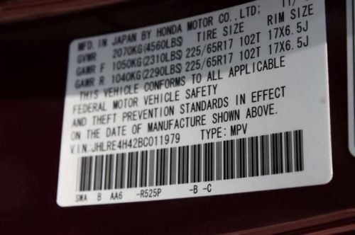 VIN (Vehicle Identification Number): JHLRE4H42BC011979