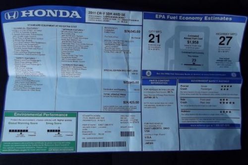 4 wheel drive CR-V looking for a new driveway or garage to call home. Drives like knew especially with the tires having superb tread left saving you that expense so you won't have to worry about that for long while. Clean Carfax with 1 owner with no accidents reported added with the 10.5k annual miles which is less than the standard 15k miles gives this a cool $390 over retail value. Special Edition 4WD trim package, 4 cylinder 2.4 liter engine, 5 speed automatic transmission with overdrive, Cruise control, Air conditioned, Power windows and locks, AM/FM/CD changer/MP3 stereo radio with auxiliary port, Tilt/telescopic steering wheel, Manual front seats, 2nd row folds down 40/60 split Privacy glass, ABS brakes, Alloy wheels Celebrating Our 31st year at same great location! Great Cars, Great Prices with Honesty and Integrity since 1983. We take the fear out of buying a pre-owned vehicle! Vehicle history report available. You can also visit our service department for all your maintenance items. We look forward to seeing you soon!