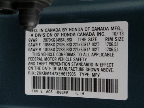 VIN (Vehicle Identification Number): 2HKRM4H7XEH613905