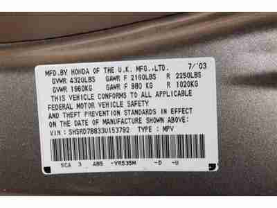 03 honda cr-v 4x4 ex 5 speed manual loaded very clean condition no reserve