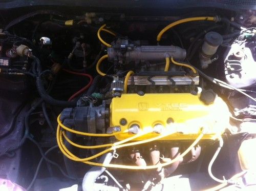 1990 Civic hatch with 1995 SI sohc d16z6 vtec motor. 4 speed with new clutch and pressure plate. Weapon R adjustable coil overs with kyb adjustable struts. Polyurethane bushings all under car. Custom purple paint with body kit. Professionally painted. Full roll cage with gutted interior. I Have dash and gage cluster. I have both ecus and 2 different engine harnesses. Yellow Momo steering wheel. Custom made pigtail for SI ecu to use in car. Have some wireing done but stopped working on this project. Needs finished. Does not run at this time. Also comes with 5 speed in crate and holly big throttle body, came gear, momo shoulder pads, 2 auto meter gages, oil filter relocator, sway bar, a few other parts that I have for it too. Any questions please email and will respond ASAP.