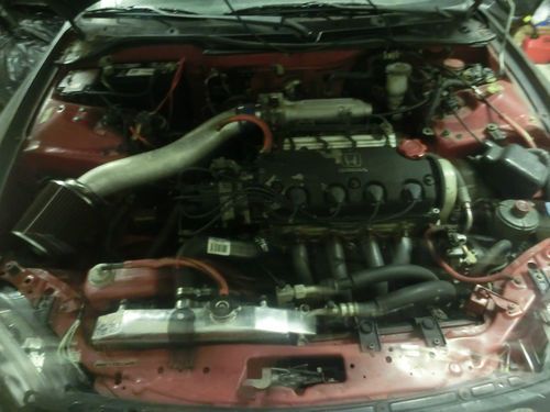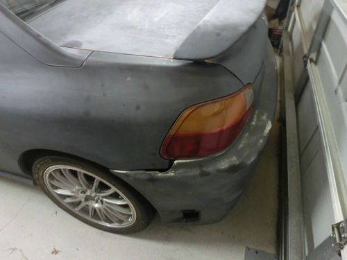 This is a 1993 Honda Del Sol Si. Runs very strong. Needs some minor body work (small dents and scratches). The car is covered with grey primer so dependent on the buyer, may want to add paint to the car. In the interior, the section that houses the radio needs repairing. Also the section for the cigarette tray needs repairing as well. For the trunk, the trunk supports are inoperable so in order to keep up the trunk, I used the support that holds the roof in place. If that is released, then the trunk will stay up. Also the hood is carbon fiber and needs restoring.