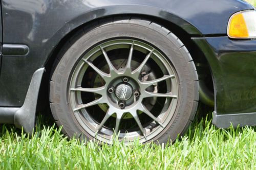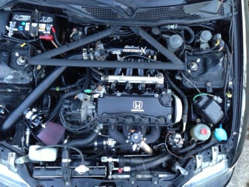 ** One note: Some picks show a black edelbrock intake manifold and aftermarket throttle body. While these looked good, the car did not run well with them on and the original OEM throttle body and intake were replaced with improved performance. So those two items are no longer on the car and are not listed below*** Exterior: JDM Front Lip- SIR style OEM Front and Rear Mud Flaps Replace OEM hood emblem Interior: JDM Armrest JDM Double din console Window TINT NEW OEM Floormats Suspension: Front sway bar-Eibach 26mm delivered Rear Say bar-ASR Rear subframe brace- ASR Rear and front strut tower braces- PSWD JDM Rear Lower control arms- PSWD JDM Rear control arm bushings- Hardrace Coilovers- AMR Rear Camber arms, toe links, sway links- PSWD JDM Front Camber Arms- Buddy Club DIY Transmission: Rebuilt tranny, Carbon Synchronizers, Quaife LSD, performance clutch Competition Clutch stage 4 Short shifter and custom shit knob- TMW Engine:(All engine work done by inline performance, springfield Virginia) 75.5 mm Vitara Pistons Eagle Rods ACL Bearing Set ARP Head Studs Head gasket Springs n retainers (in line pro) Performance radiator Bosch high performance aftermarket alternator 675CC Injectors OE 4 Bar Map Sensor Go Autoworks D Street Kit w/ 3" flared downpipe Exhaust: Thermal R&D exhaust complete 3in Brakes: SS Brake lines-goodridge Cross drilled slotted rotors- PSWD JDM Hawk HPS pads Wheels/Tires: 15x7 O.Z. Ultraleggera Gunmetal finish 205/50R-15 Bridgestone Potenza RE-11 Lugs-Project Kicks R40 Gunmetal finish Audio: (Custom box build and install by Obsession Motorsports) Pioneer AVIC-Z140BH 2DIN with Navigation JL audio thinline 13.5 in sub Focal component speakers JL Audio amps x2 Base Cutoff Security: Viper 5902 Other: ESCORT 9500ci |