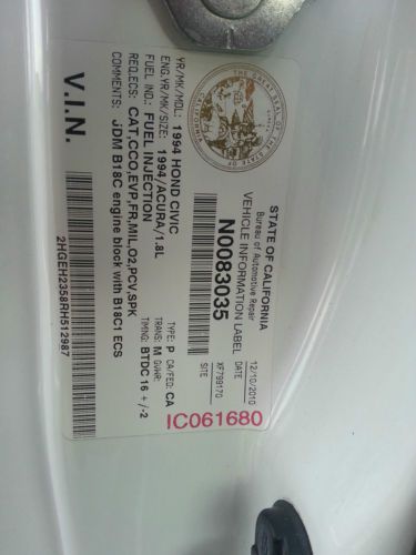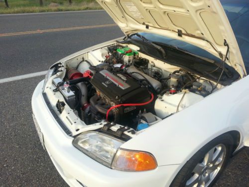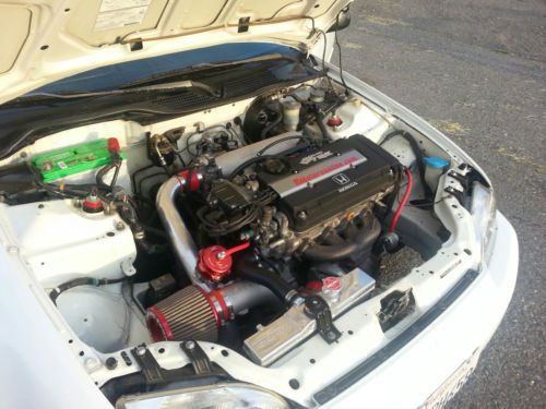 - H Motors Online GSR Swap 94-95 w/LSD Transmission/ Act heavy dutty clutch and 12lb fly wheel. - CA State Bar Certified.... To pass CA smog test is simple but never guaranteed. Simply bolt on catalytic converter and swap out injectors and ecu/ecm. Seller asumes no liabilities or resposibilities. Please drive safe and 'OFF ROAD" when car is running Hondata,rc injectors, and test pipe. - Edlebrock 50 State legal Turbo Kit for 94-95 GSR - Hondata S3000, RC550 Injectors, Walbro 255 LP Fuel Pump, (not running Edelbrocks piggy back fuel and timing mngmnt. of course,but is present for smog check.) - Innovate wide band O2 Censor w/gague - Autometer oil guage - Edlebrock boost guage - SI guage cluster - GSR Disc, brake, and sway bar conversition,earls rear break lines. - Skunk 2 Pro C Coilovers - Skunk 2 Adjustable A arms/camber. - 2000 Si Wheels - 92 Si Hatchback interior swap - EDM Steering wheel and Center console - Alpine CD Player w/Bluetooth - Koyo Radiator - Interstate Battery - Custom 2 1/2" exaust w/test pipe Magnaflow resinator and oval Magnaflow straight through muffler, Catalytic converter included. - Dyno sheets 274 Wheel horsepower and 194 LBS Torque/ 8 psi, at the DYNO SPOT, in Sanjose California - H Motors Receipt - Edlebrock E.O. Sticker and Certificate |